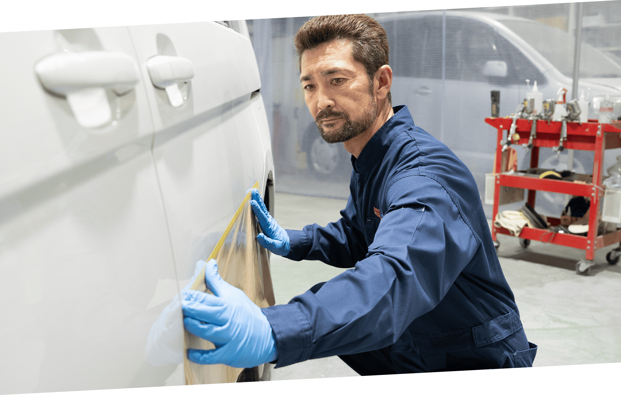 バンパーやフェンダー、ドアなど自動車外装に生じた傷をクイックに修復し、お客様への納車をスムーズにするお手伝いをさせていただきます。水性補修塗料を主に使用するため、安全面に配慮した施工を実現。出張での施工を可能にしました。そのため一般的な板金修理よりも大幅に納期と価格を抑えながら、お車を綺麗にさせていただきます。