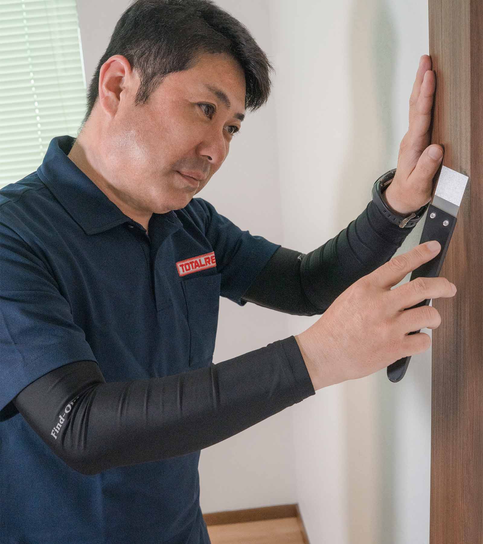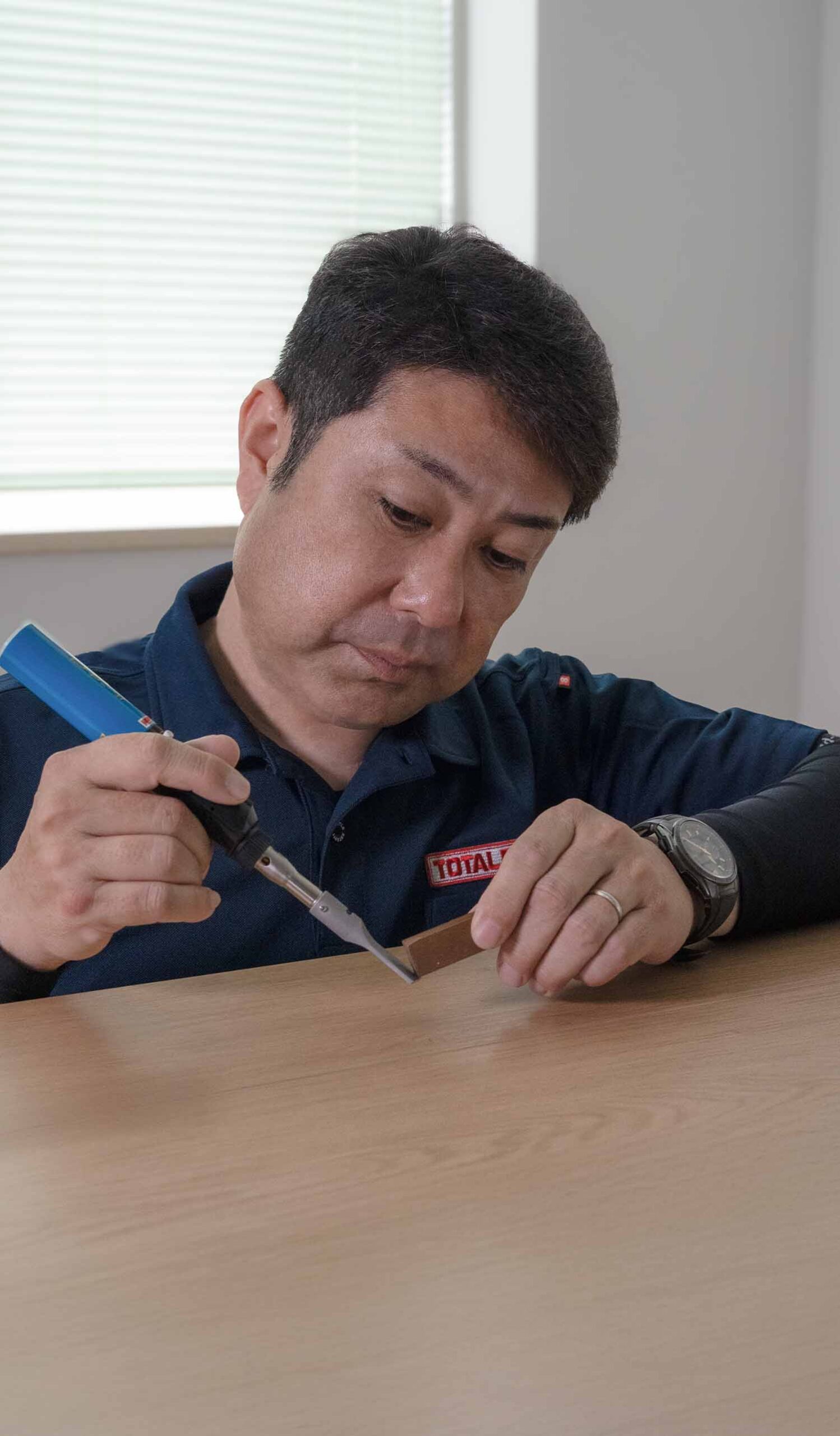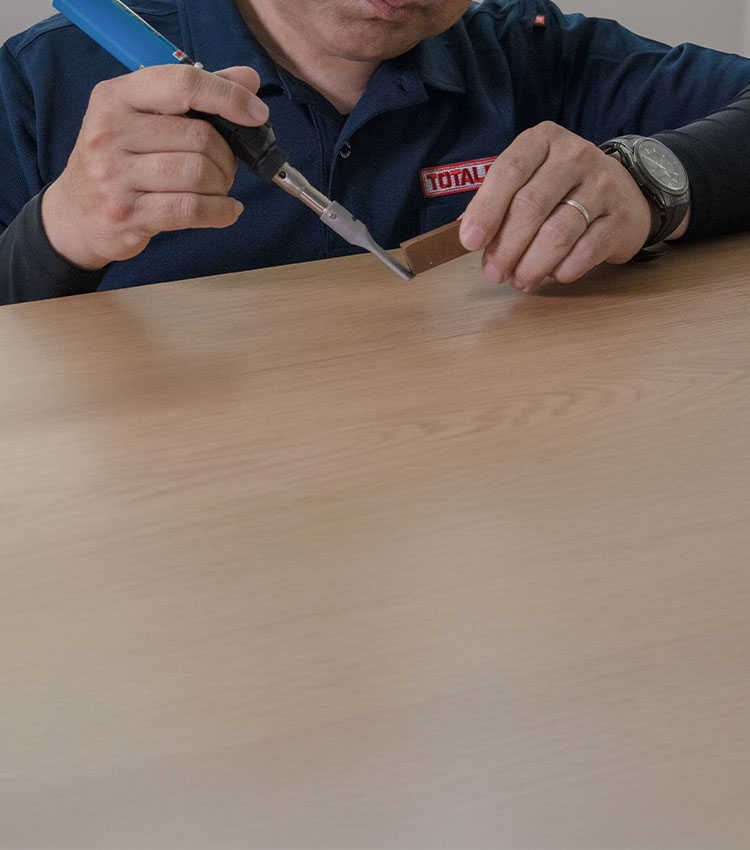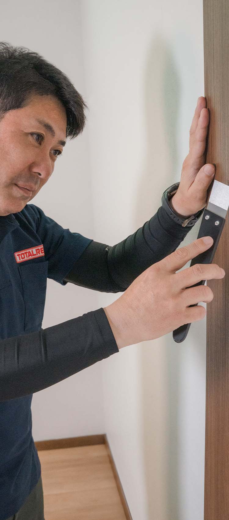 トータルリペアは、自動車や住宅をはじめ、家具、革製品などの傷や劣化を修復するサービスを全国規模で展開しています。当店は、1,000店舗以上ある加盟店の一つとして、特に住宅関連のリペアに特化しております。